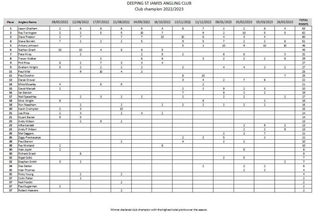 Fished over 10 points matches in both Summer and Winter during 2022 / 2023