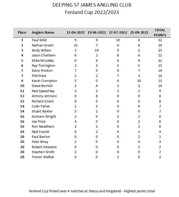 Paul Wild needed just 3 points from this 4th and final round with Nathan Grech and Andy Wilson in joint second place and only a win would have been good enough to trouble Paul. Paul managed to get 4 points and 7th place to take the Fenland Cup in 2022