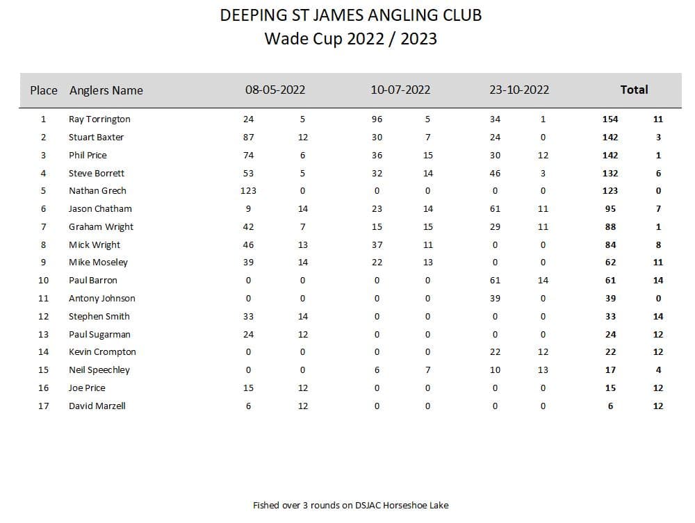 It was also close after the final round of the wade cup with only 12lbs separating the top 3 spots. Ray Torrington’s 34lb 1oz was enough to crown him Wade Cup Winner 2022 with an overall weight of 154lb 11oz