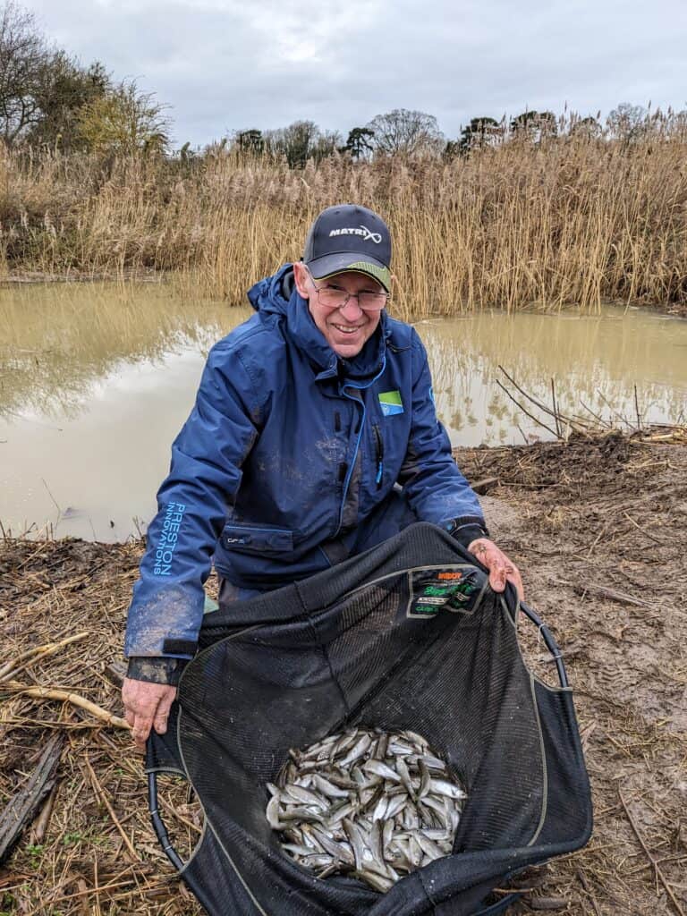 Last year’s DILS winner Antony Johnson finished in second place on peg number 7. Antony fished the 4m whip loose feeding pinkies and maggots, with single maggot hook bait. With the odd Roach but mostly consisting of Bleak, Antony weighed in with 8lb 12oz.