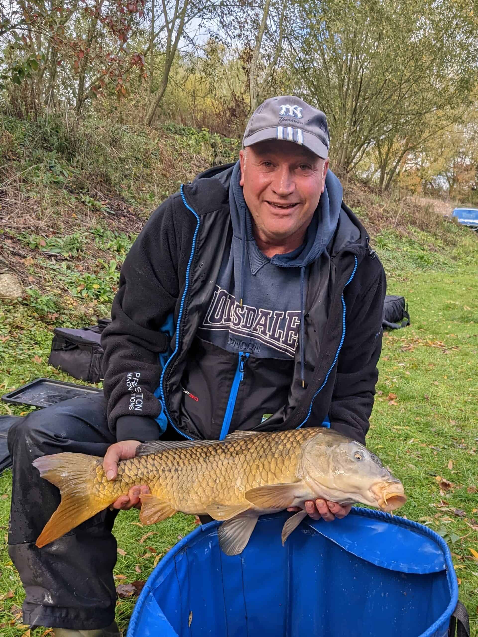 Third place to Steve Borrett with 46lbs 3oz from peg number 15. Steve caught on the method feeder with pink or orange wafters, along with one on the worm and one on dog biscuit using the pellet waggler.