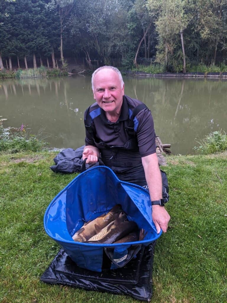 Third place to Steve Borrett with 55lbs 12oz from peg number 13. Yes, Steve also went for the dog biscuit on the pellet waggler.