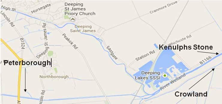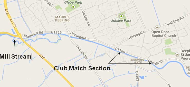This extends from above Market Deeping at junction of old river and Mill Stream, through Market Deeping and Deeping St James to a point downstream known as Kenulph’s Stone & covers both banks.